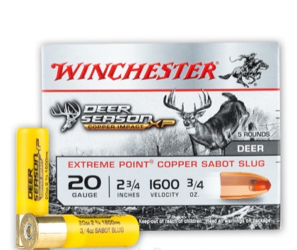 20 Gauge – 2-3/4″ 3/4oz. Extreme Point Copper Sabot Slug – Winchester Deer Season XP Copper Impact – 5 Rounds