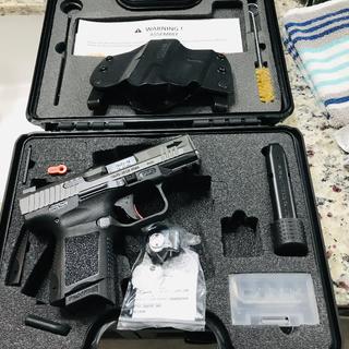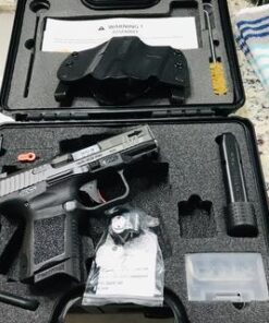 The Century TP9 Elite Subcompact pistol features interchangeable backstraps, reversible mag release, match grade barrel, and an integral accessory picatinny rail. The ability to convert this pistol from a subcompact to a compact with just the insertion of the 15 round magazine that includes a finger rest and matching grip texture gives the shooter a two guns in one situation. Also included are a toolbox, and a concealed carry holster with reversible clips for IWB and OWB use.