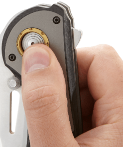 Steel bolts interlock with the blade when it’s deployed to yield outrageous strength. A prominent button sits at the pivot point for simple, intuitive disengagement without fingers crossing the path of the blade.