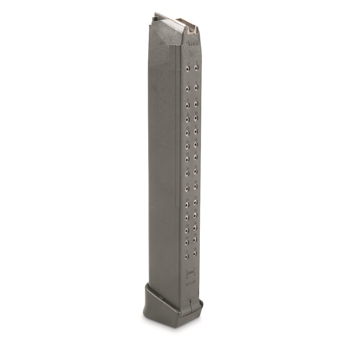 Designed to fit your Glock chambered in 9mm, this KCI Replacement Magazine provides reliable, smooth-feeding action for your favorite pistol. For use with Glock 17/18/19/26/34 pistols. 33-round capacity.