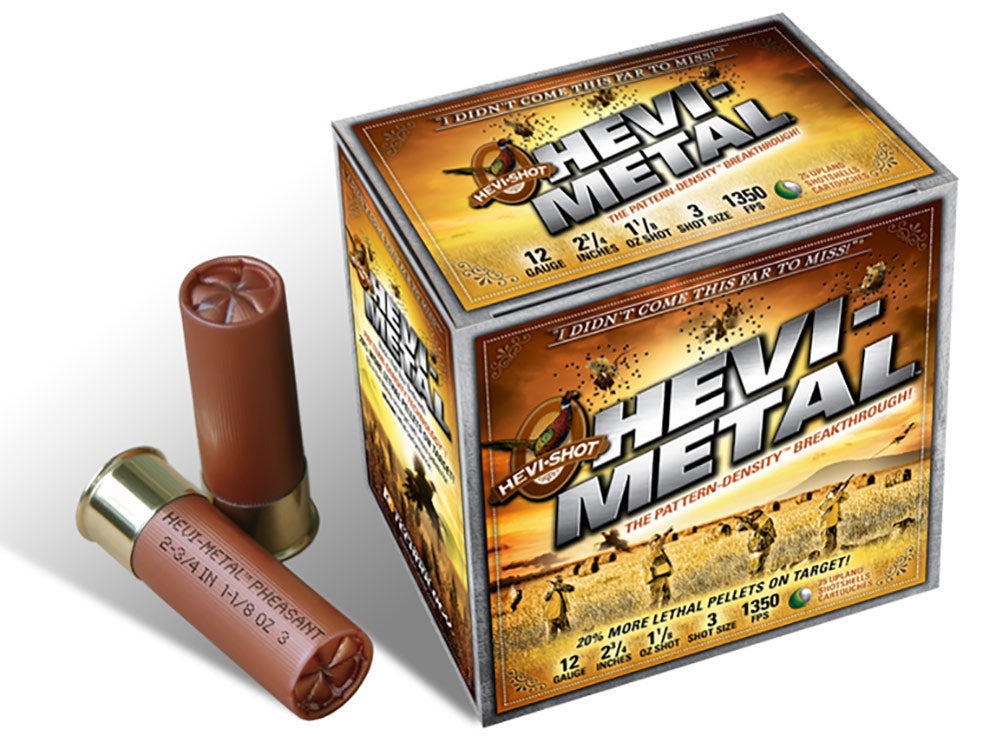 One of the most effective non-toxic upland loads is Hevi-Metal Pheasant. Like Hevi-Metal waterfowl loads, it features a duplex payload of tungsten-based Hevi-Shot pellets stacked atop standard steel pellets. The Hevi-Shot pellets provide long-range lethality, while the steel component fills in gaps and improves pattern density. Using steel shot also reduces the overall cost per shell compared to a 100 percent Hevi-Shot load. The result is tungsten performance at a reasonable price. Hevi-Metal Pheasant is available in both 2 3/4-inch 12- and 20-gauge in shot sizes 4 or 5. The 12-gauge offering pushes its 1 1/8-ounce payload at a speedy 1,500 fps, while the 20-gauge version throws a 7/8-ounce charge at 1,300 fps. Roosters Iβve bagged with Hevi-Metal Pheasant suffered multiple lethal pellet strikes, which is always the best way to prevent wounded runners from escaping.