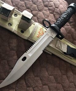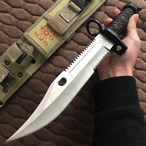 This Fixed Blade Knife looks and feels really strong ,so good ,very Classic and Full of arrogance edge. Collection knife, comfortable feel.You’ll get work done in fun. Great Quality Hunting Knife 440 Stainless Steel Blade Serrated Sawback Design G10 Handle/Nylon Sheath with Belt Loop.