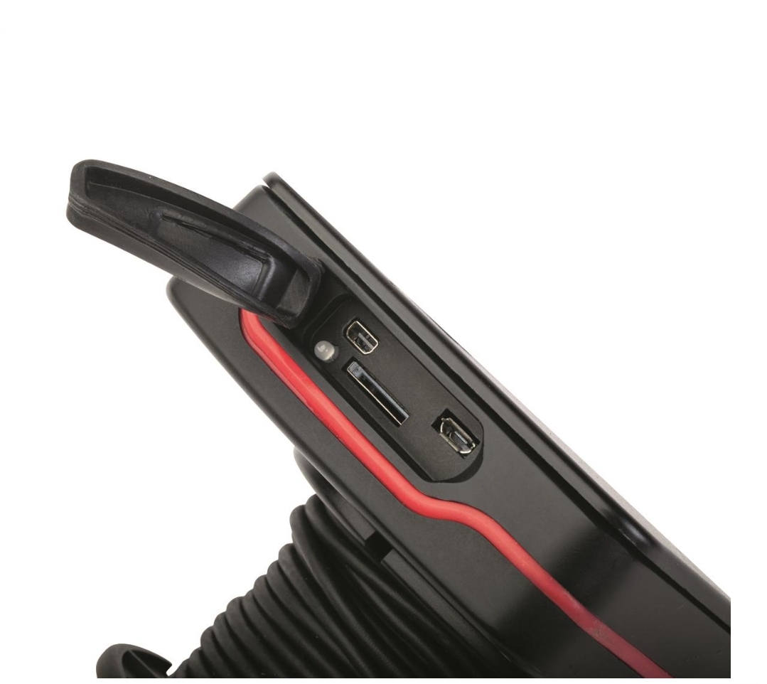 - Integrated cable reel easily manages 50′ of cable